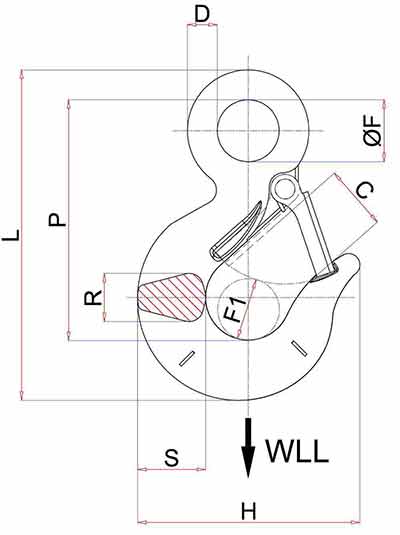 Eye hook 1120kg is designed to be used as an end attachment of a chain, wire rope or synthetic sling.