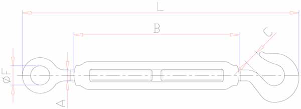 Stainless steel turnbuckle eye and hook is designed to be used when excellent corrosion resistance is important. It can be used with a chain, strap or wire rope.